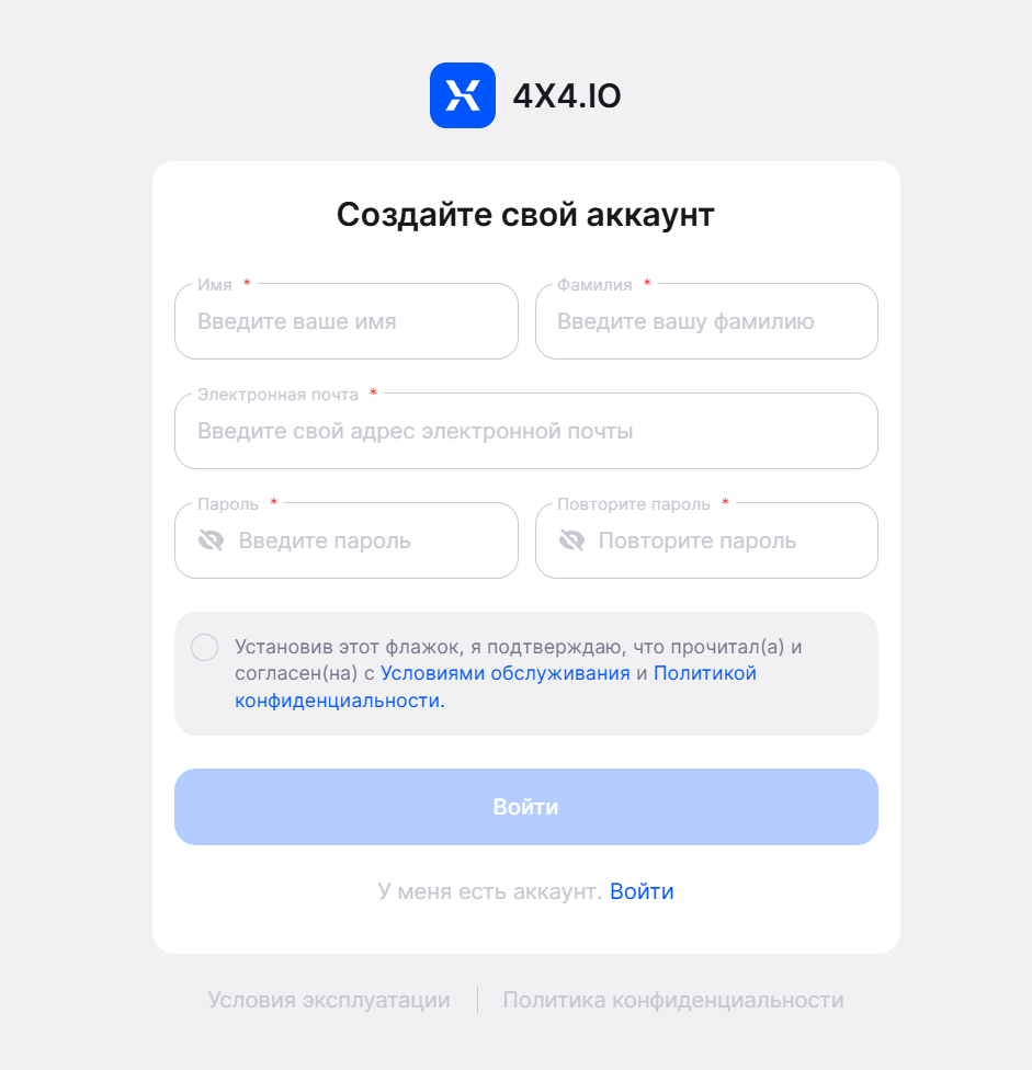 Зарегистрировать аккаунт, пополнить баланс и сразу выпустить карты у вас не получится — 4x4.io требует обязательный апрув со стороны менеджера. Чтобы создать учетную запись, вам потребуется: