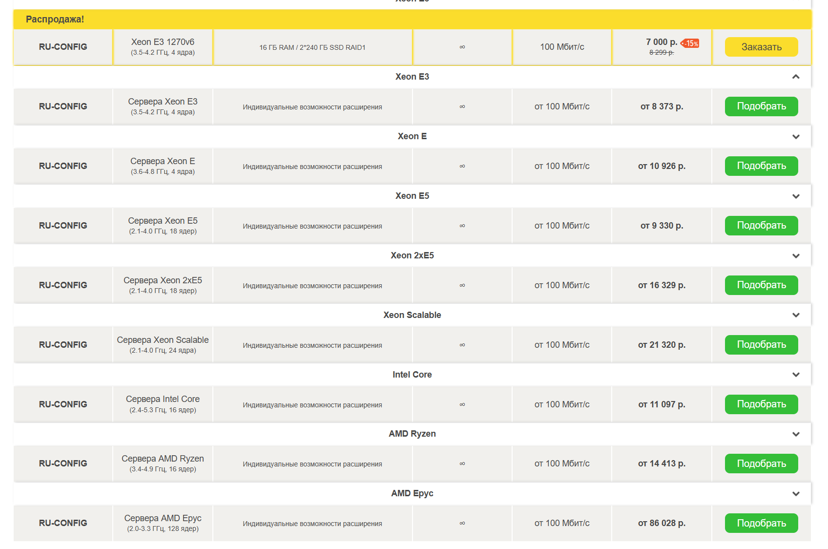 Выделенные сервера в РФ имеют следующие параметры и цены: