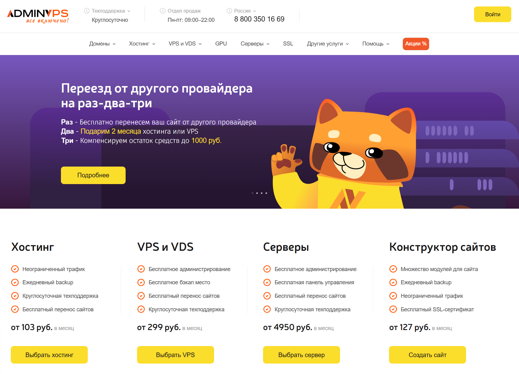 AdminVPS — популярный хостинг-провайдер, предоставляющий широкий спектр услуг. Позволяет размещать у себя проекты самого разного масштаба. Подойдет для пользователей из РФ и Европы, как для частных клиентов, так и для бизнеса.