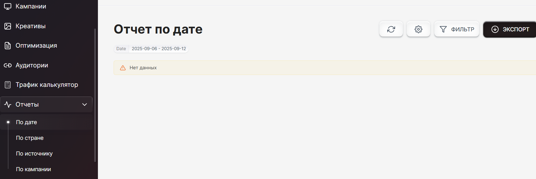 Последняя вкладка кабинета рекламодателя позволяет увидеть один из четырех типов отчета — по дате, стране, источнику и кампании соответственно.