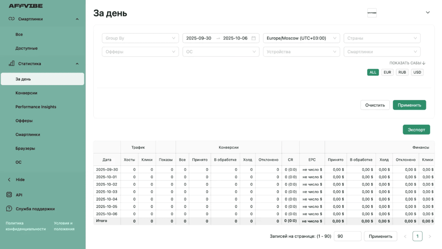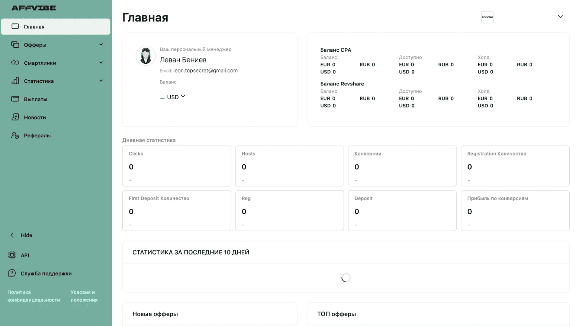 Личный кабинет Affvibe Partners