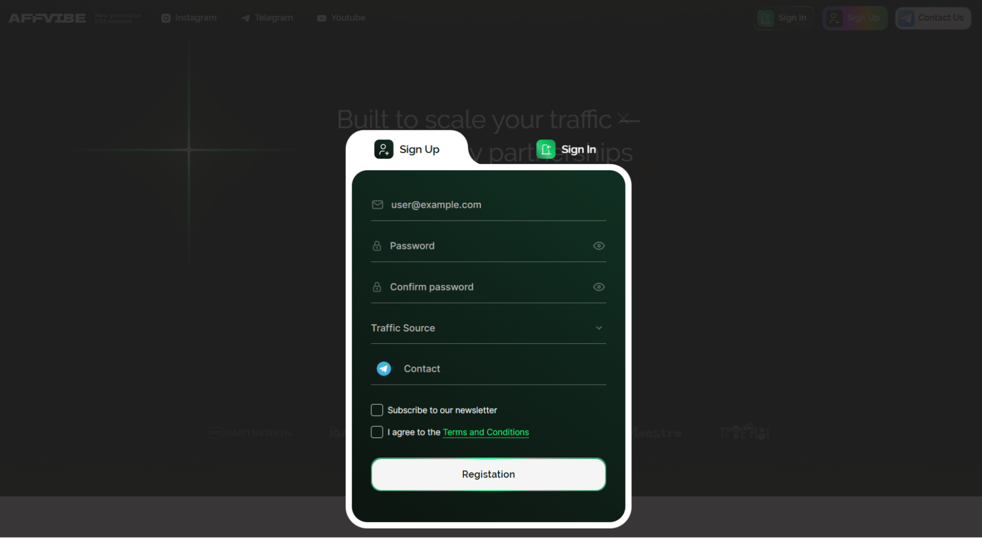 Как мы уже говорили, Affvibe Partners — это закрытая партнерка. Чтобы зарегистрировать учетную запись, нам нужно: