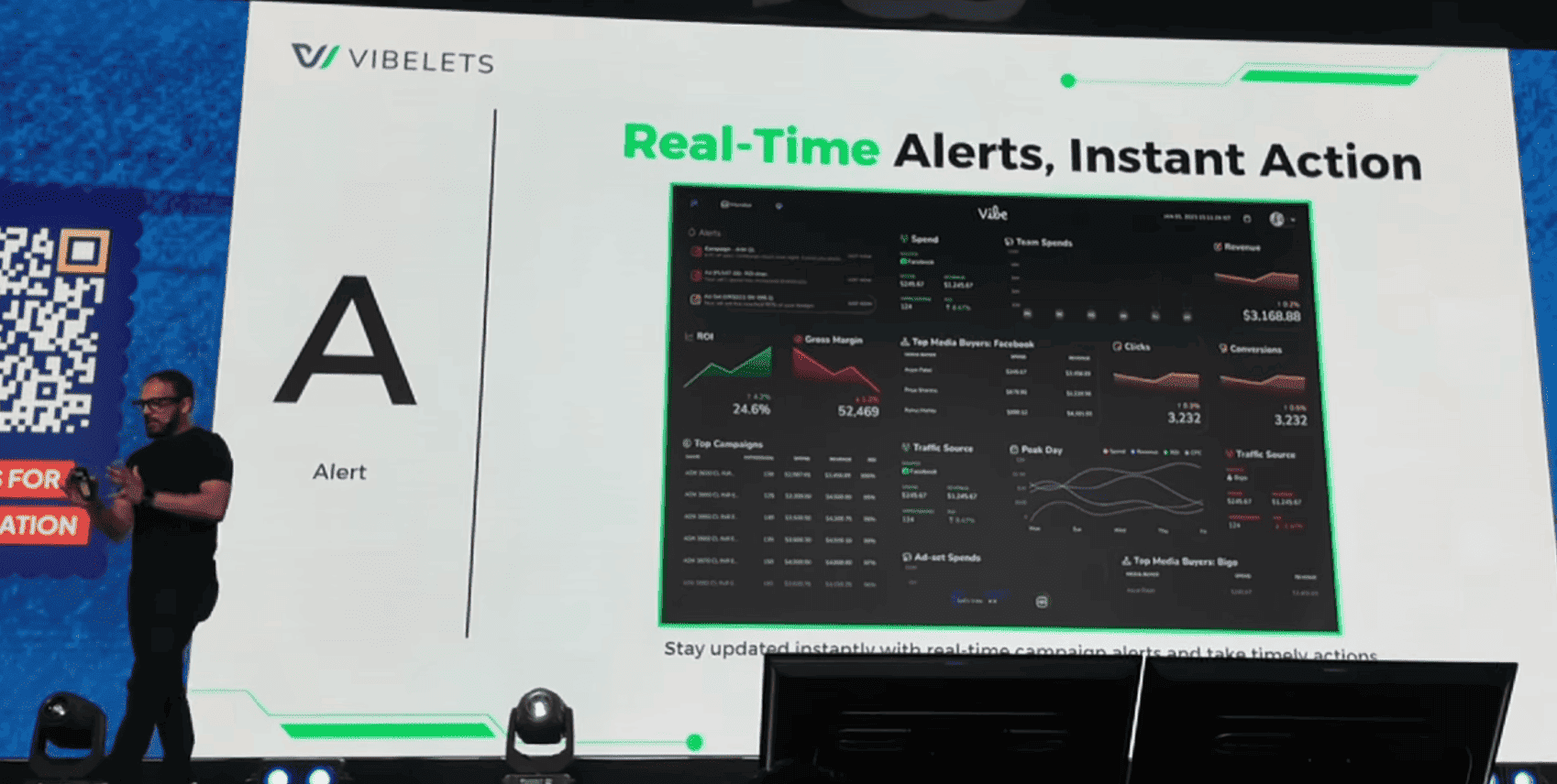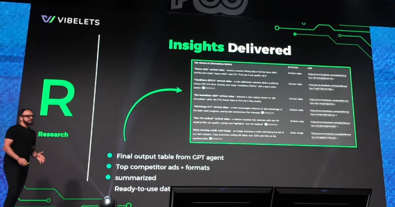 В своем докладе Нипуна Тании также рассказал и о собственном продукте Vibelets, который может генерировать и оптимизировать креативы, анализировать рекламу конкурентов и отправлять пользователю оповещения с важными данными и советами по оптимизации рекламных кампаний.
