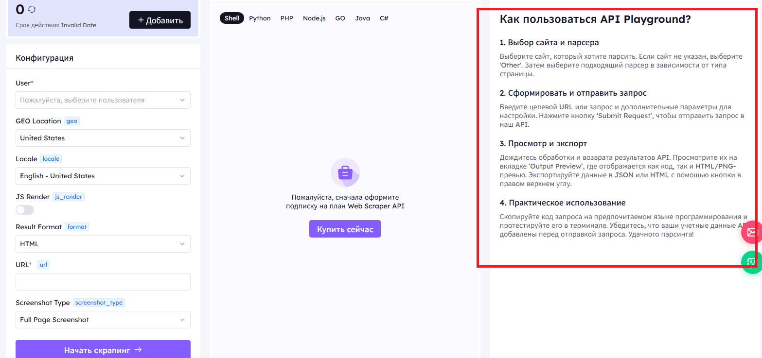 - API-краулеры — от $0,39 /1K успешных запросов. Включают в себя структурированный вывод данных (JSON и HTML), сопровождение технической поддержки в режиме 24/7, интеграцию ваших индивидуальных требований и доставку результатов в реальном времени.