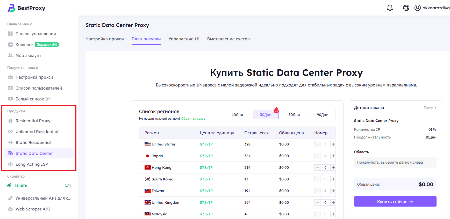 BestProxy — это международная платформа аренды прокси-серверов, представляющая более 80 миллионов резидентских прокси со всего мира. Главное отличие серверов BestProxy — это надежность, безопасность и быстродействие.