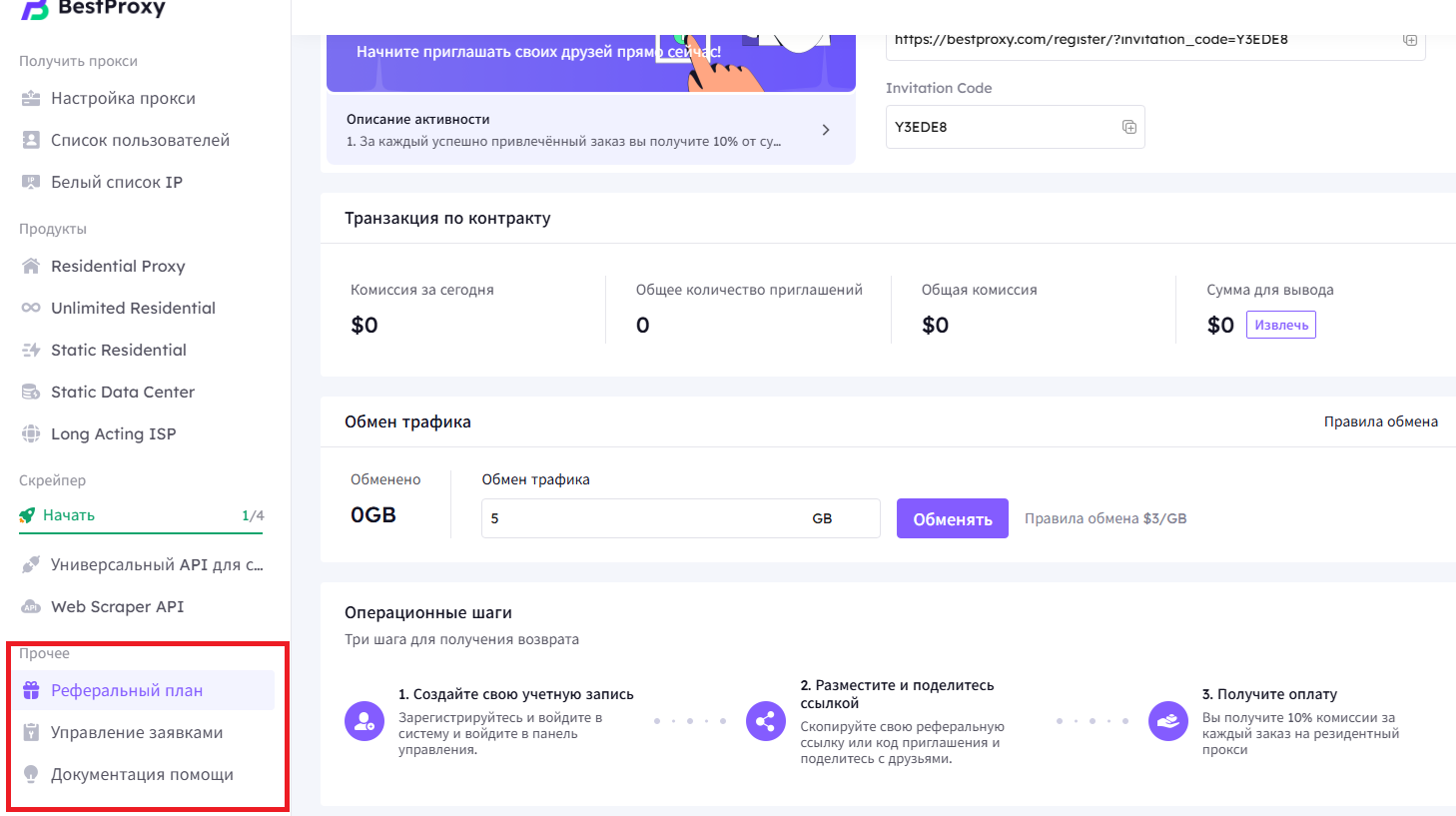 - Партнерская программа — вы можете передавать услуги BestProxy собственным пользователям или другим реселлерам. Вся необходимая для этого инфраструктура у платформы имеется. В том числе — отдельный API.