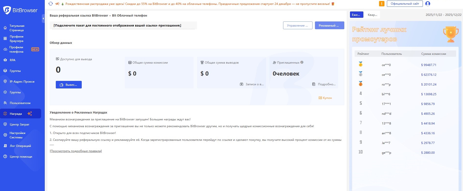 Вы можете принять участие в партнерской программе BitBrowser. По ее условиям у вас есть возможность заработать до 20% комиссионных от стоимости подписки пользователя, которого вы привели.