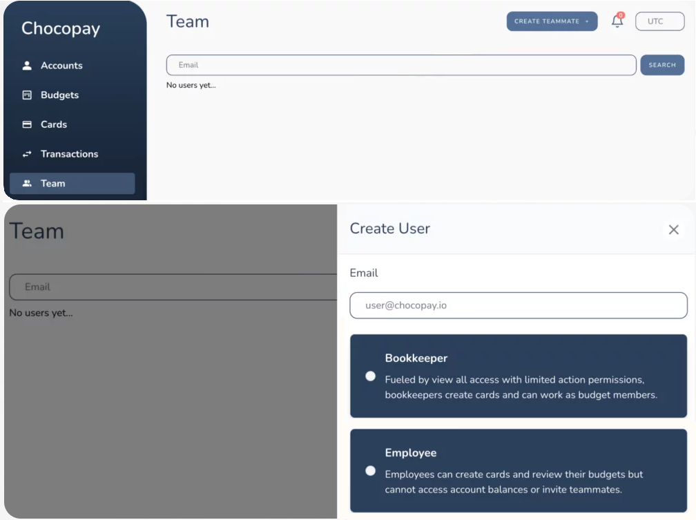 - Командный функционал — позволяет совместно управлять картами и спендом, а также назначать роли и доступы для отдельных участников.