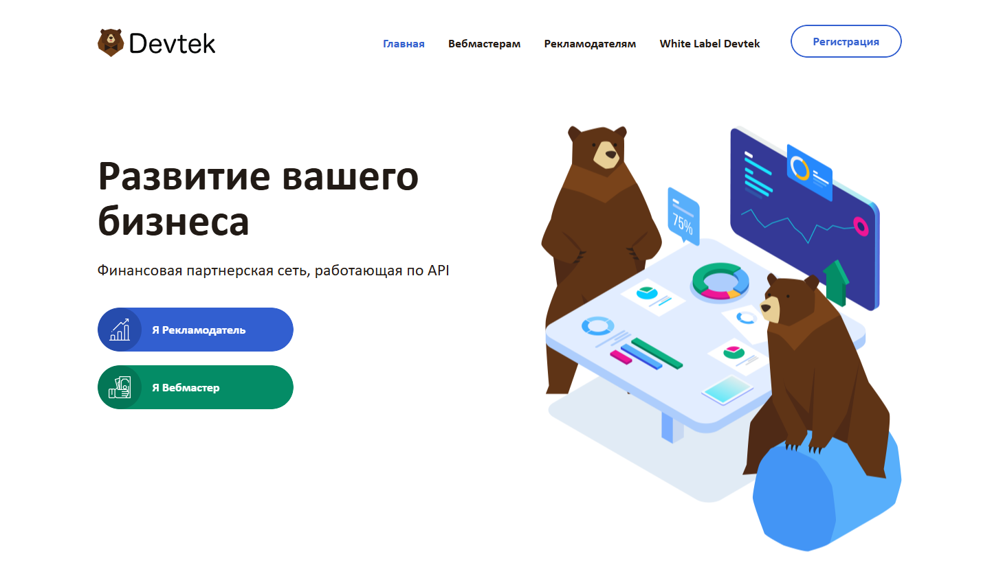 Devtek — это закрытая финансовая партнерская сеть с акцентом на API-интеграцию и работу с данными.