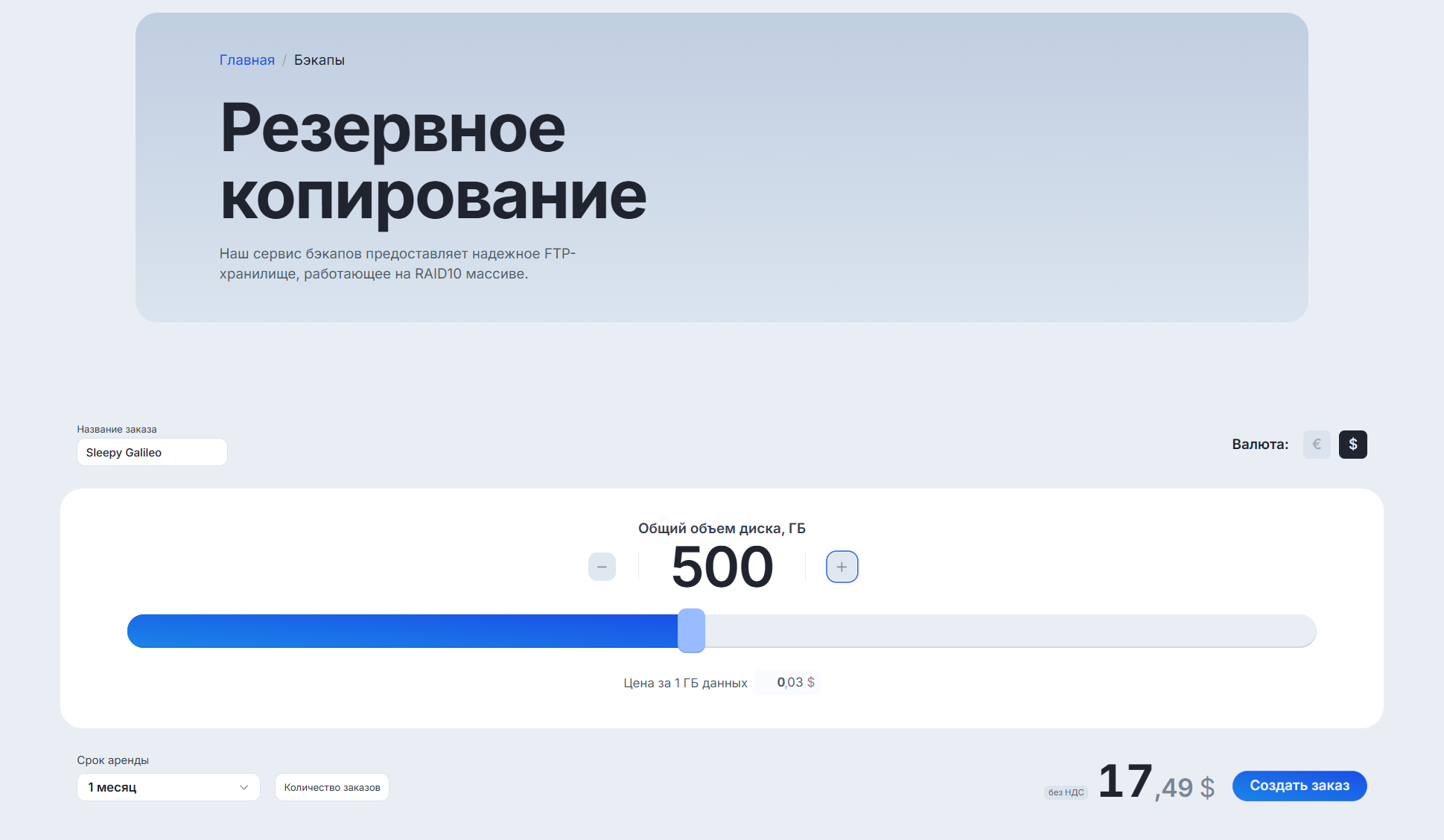 - Резервное хранилище — место для хранения ваших бэкапов с подключением по FTP.