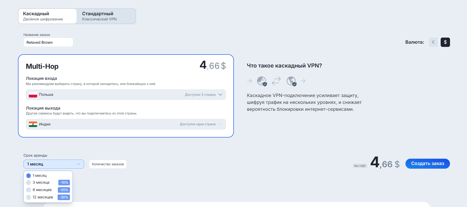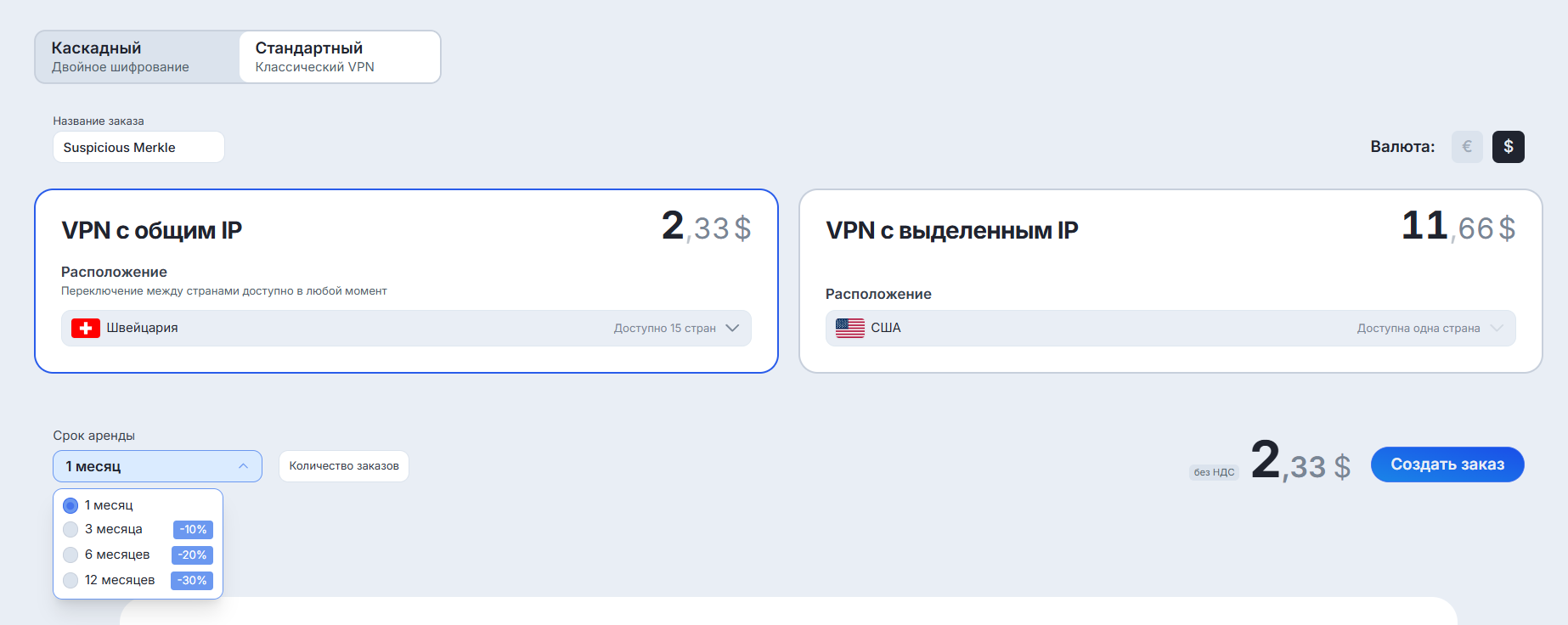Здесь FORNEX предлагает на выбор несколько вариантов VPN с фиксированным тарифом вне зависимости от региона.