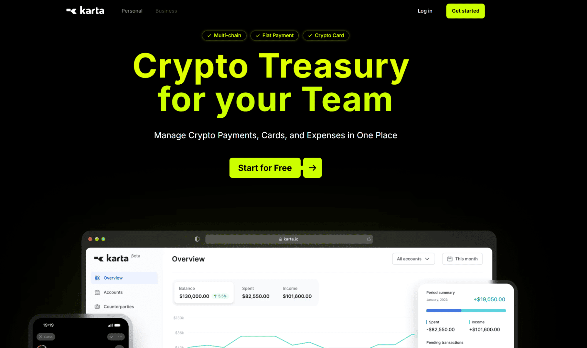 Karta — американский сервис выпуска виртуальных карт, также популярный и в СНГ-сегменте (особенно в нише affiliate-маркетинга). На рынке с 2019 года. Предоставляет своим пользователям два варианта продукта на выбор: Personal — для частного использования (оплаты товаров и услуг как онлайн, так и офлайн) и Business — для бизнес-расходов соответственно (например, для оплаты рекламы, оплаты услуг фрилансеров и т. д.).