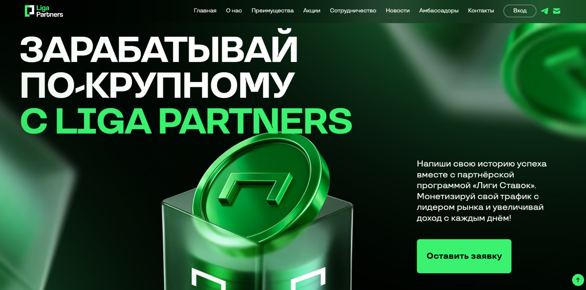 Привет! Сегодня у нас на изучении Liga Partners — партнерка и прямой рекл первой легальной в РФ букмекерской компании «Лига Ставок». Партнерка стабильно работает вот уже почти 10 лет, предлагает одни из самых выгодных условий сотрудничества в нише. В этом обзоре мы максимально детально рассмотрим характеристики и преимущества Liga Partners, а также обязательно зарегистрируемся и пройдемся по личному кабинету веб-мастера. Давайте начинать!