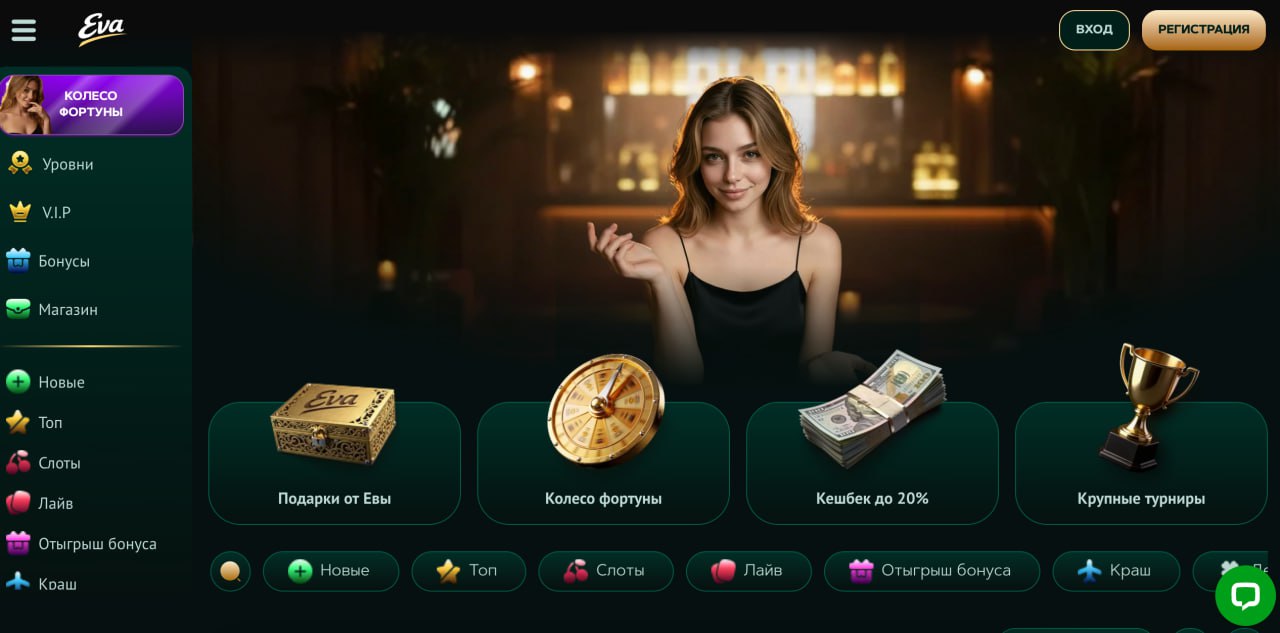 EVA — новый онлайн-казино проект в экосистеме NOVA PARTNERS, официально запущенный 10 марта 2026 года. Платформа ориентирована на современный игровой опыт с быстрыми выплатами, системой бонусных механик и геймификацией для удержания игроков.