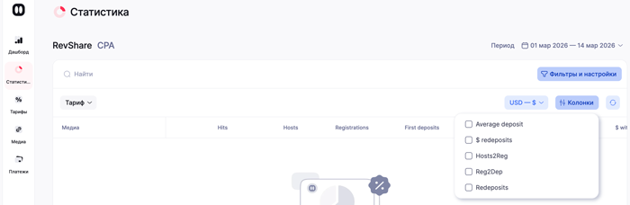 - Предоставляет детальную статистику по привлеченным игрокам и доходу, который они принесли вебмастеру.