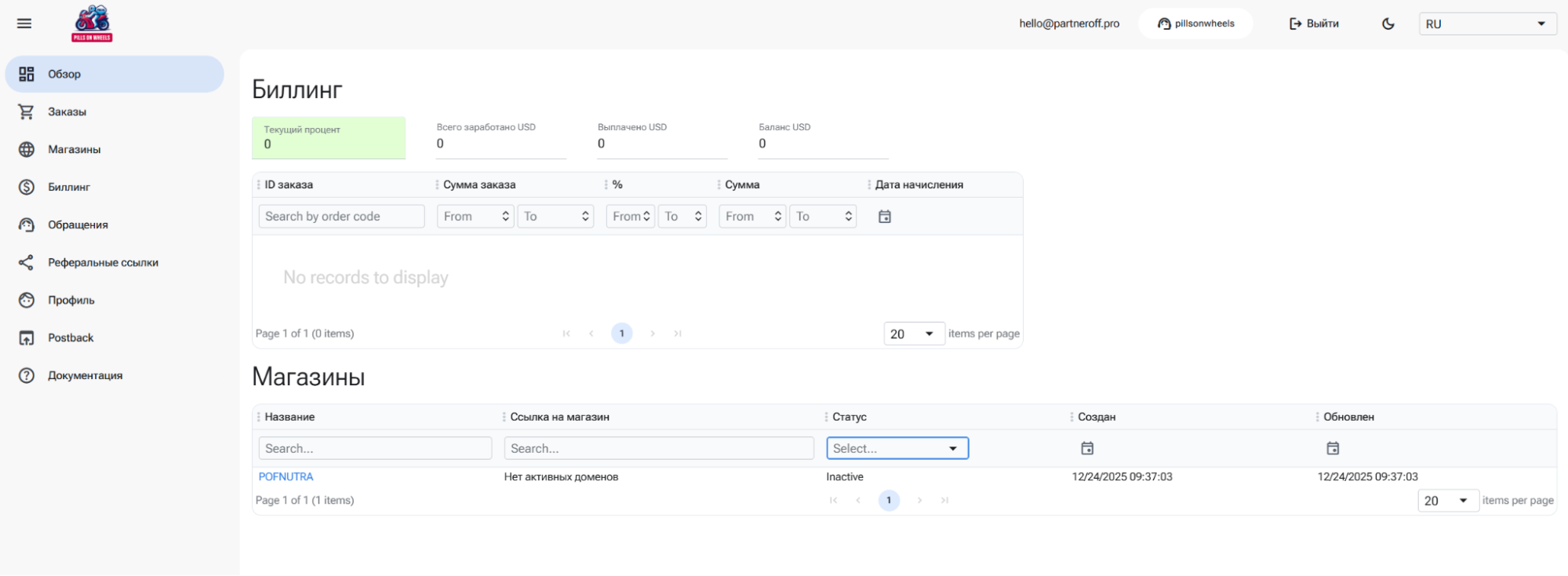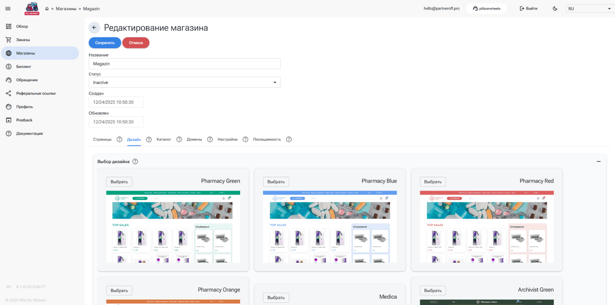 - Конструктор прямо в ЛК — о самом личном кабинете пока что много говорить не будем, так мы детально разберем его чуть позже. Но отметим, что помимо стандартных инструментов — вроде статистики, постбэков, и им подобных, Pills on wheels предоставляет собственный конструктор магазинов с возможностью подключения неограниченного количества пользовательских доменов. Каждый веб-мастер может создать столько магазинов, сколько ему необходимо для эффективной работы!