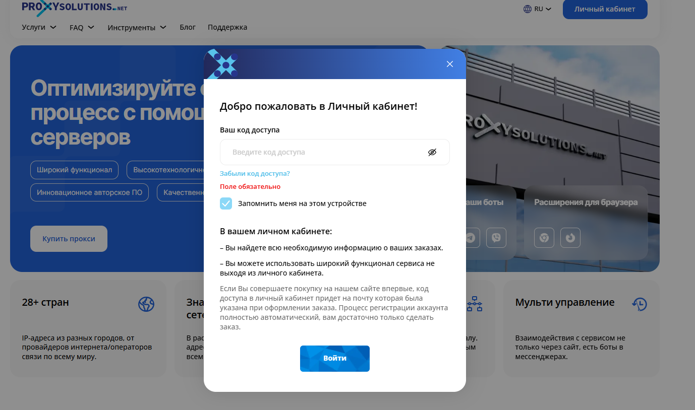 Личный кабинет в Proxy-Solutions