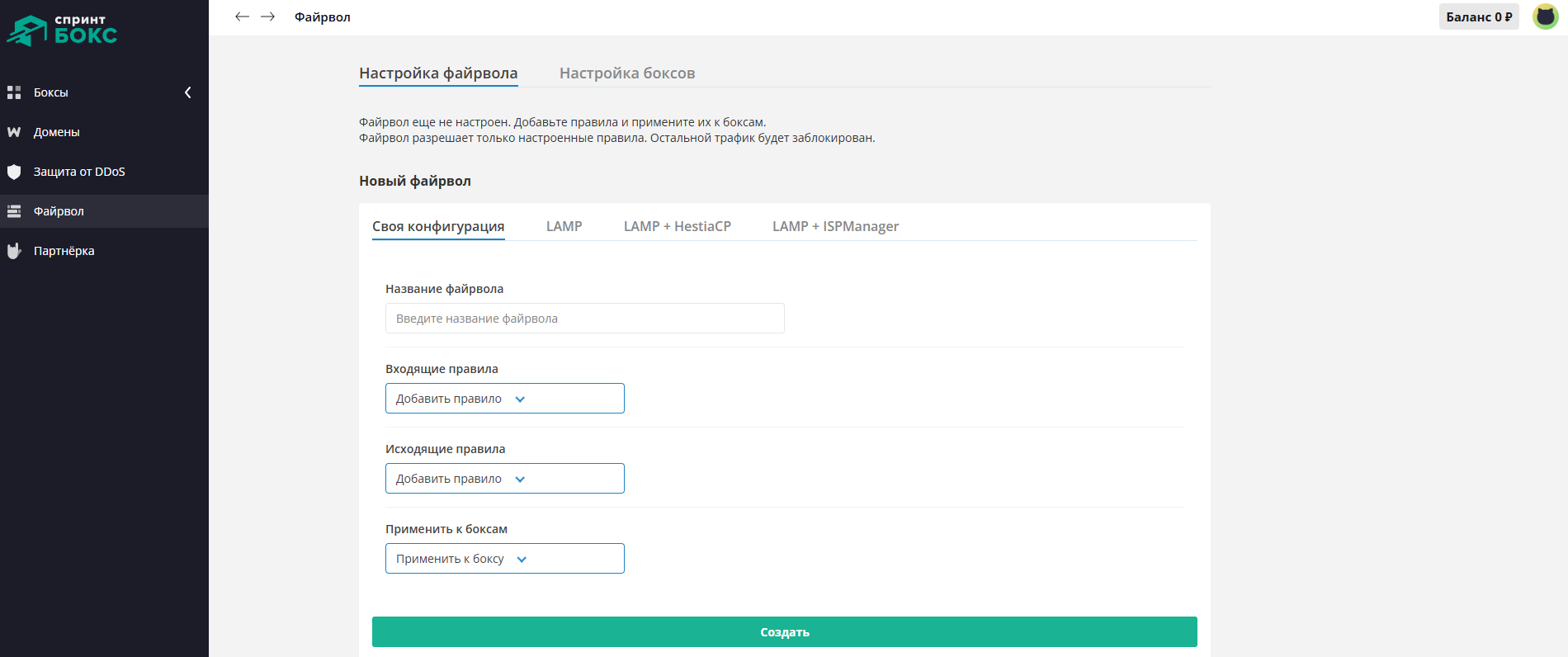 В этом разделе можно настроить как файрвол, так и боксы. При настройке учитываются разные конфигурации и параметры.