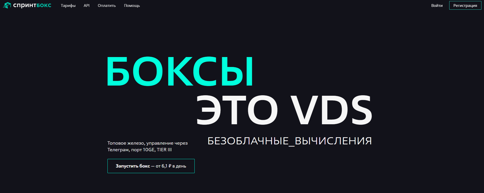 Sprintbox — это проект популярного хостинг-провайдера «Спринтхост». Юридически это одна и та же компания, но по факту Sprintbox делает акцент на услугах по аренде виртуальных серверов, которые здесь называют боксами и описывают, как быстрые виртуальные машины. Сервис предлагает топовое железо, управление через Telegram и дата-центр уровня Tier-3.