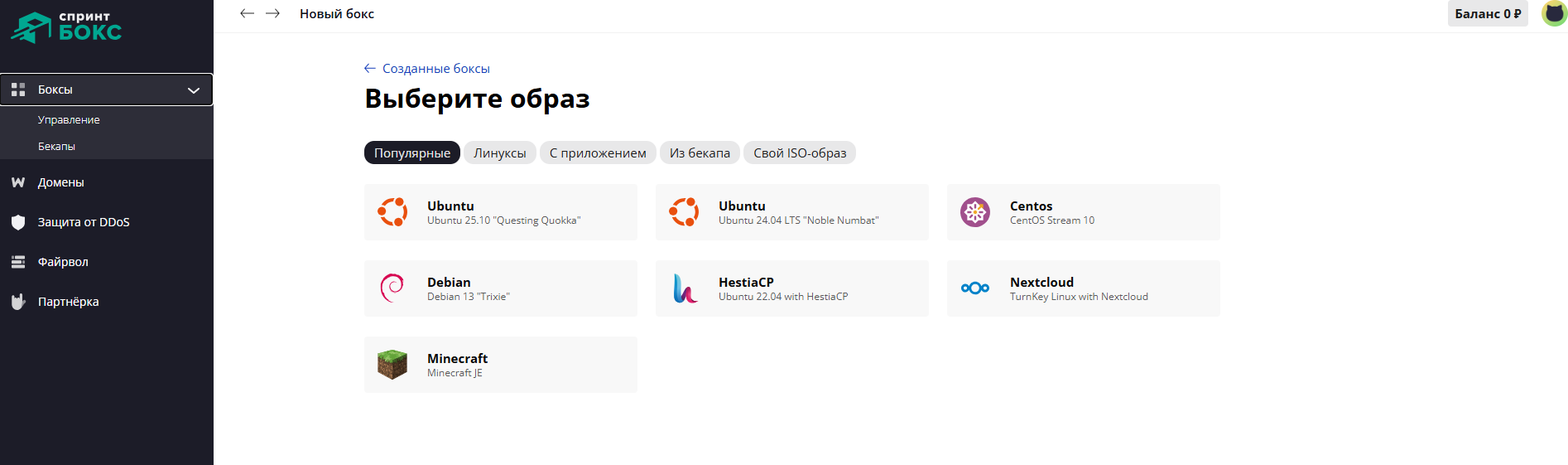 Своим клиентам Sprintbox предлагает разные дистрибутивы: от Ubuntu и HestiaCP до Fedora и GitLab.