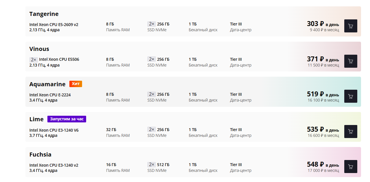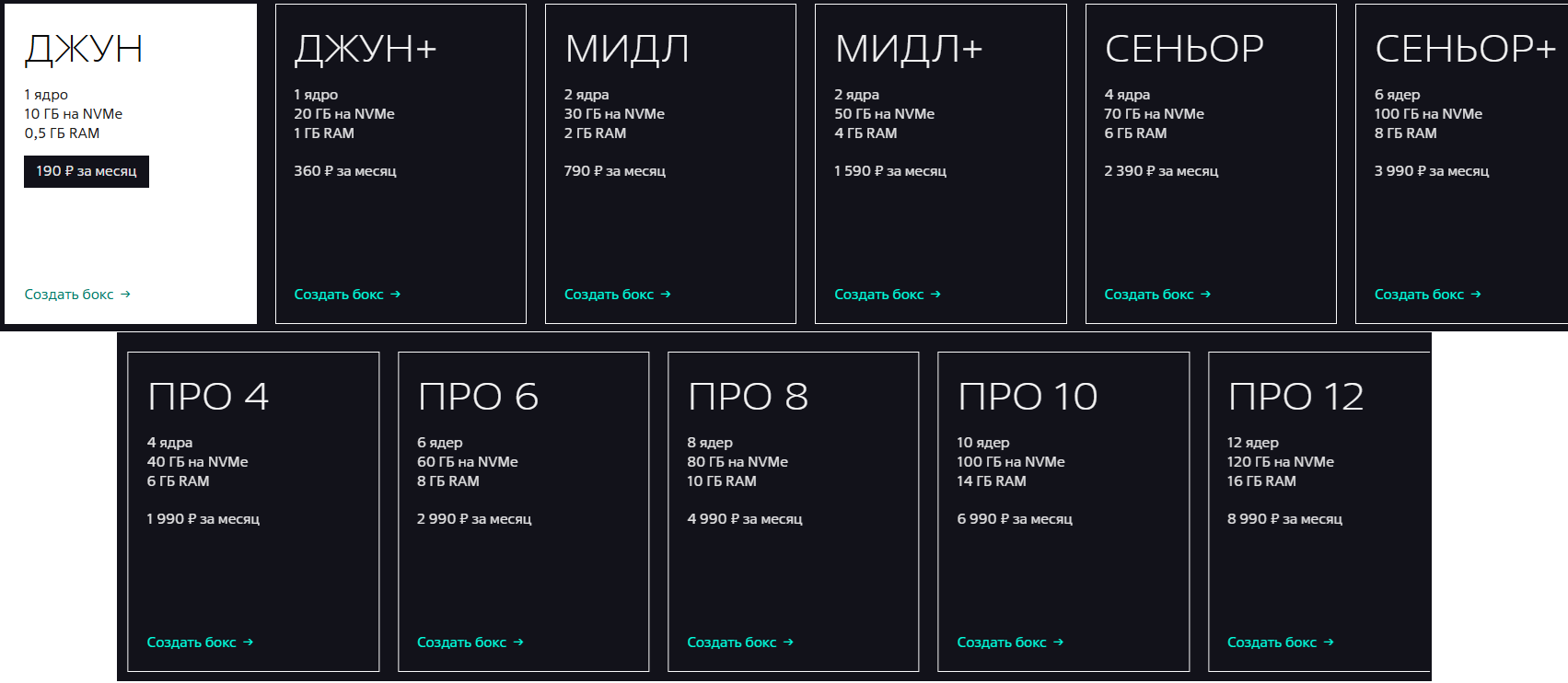 С полным списком конфигураций и возможностей каждого из тарифов можно ознакомиться вот здесь.