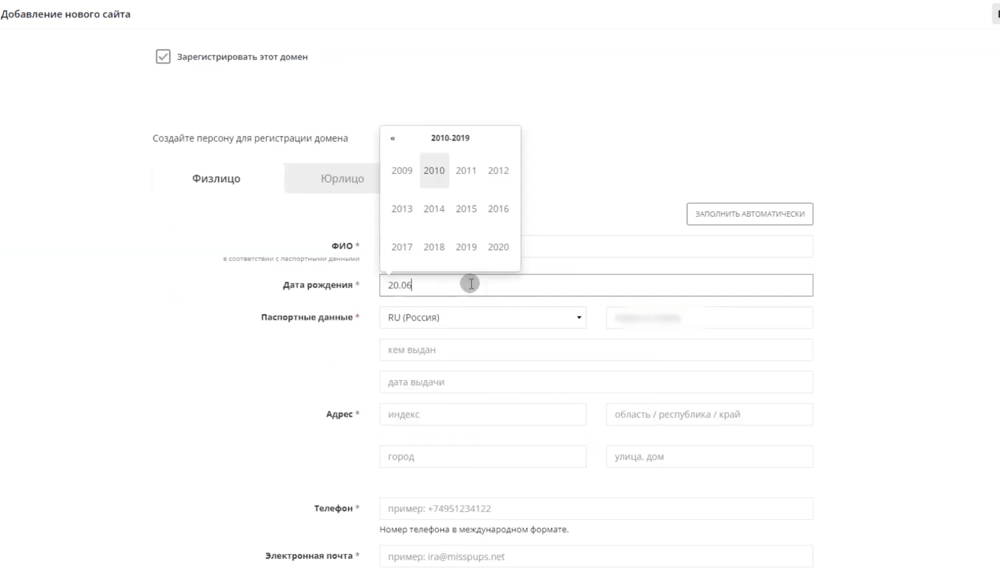 Далее Спринтхост предложит выбрать один из тарифов для виртуального хостинга, указать адрес электронной почты для регистрации и мобильный номер. После входа в личный кабинет провайдер попросит вас заполнить форму с данными (в том числе и паспортными).