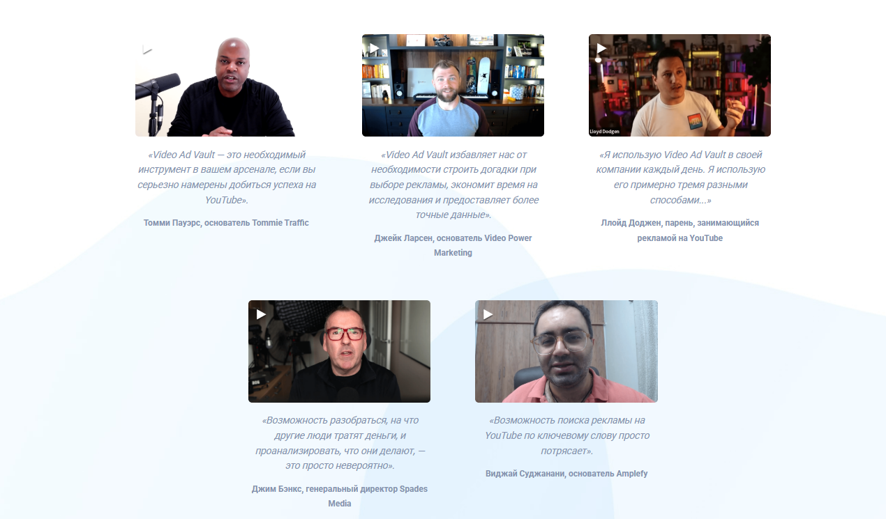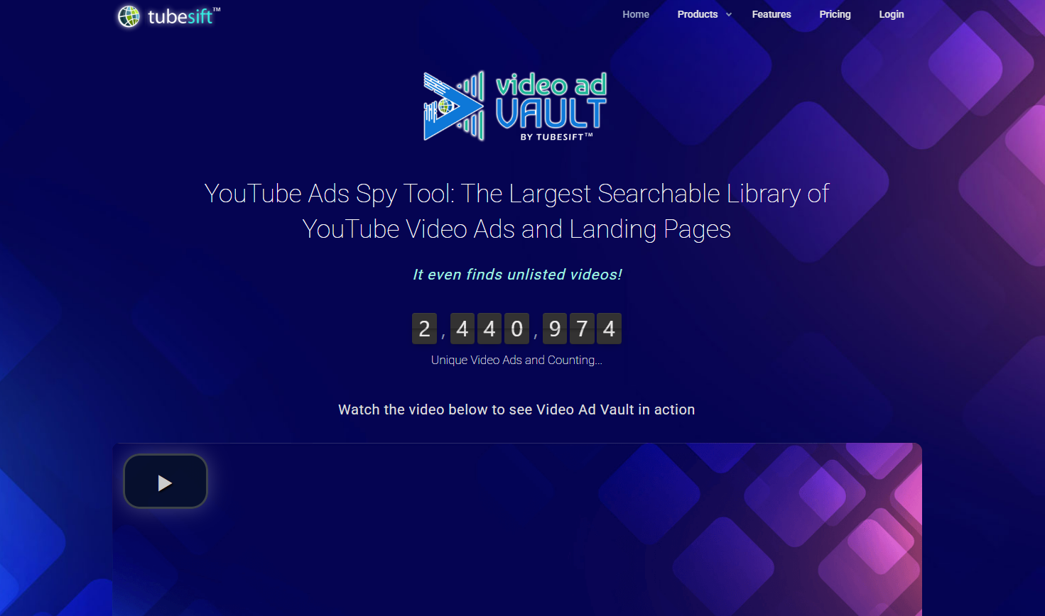 Video Ad Vault — спай-сервис от компании TubeSift для мониторинга и анализа рекламных креативов на YouTube. Платформа предлагает крупную библиотеку видеорекламы с доступом к более чем 2 млн креативов, где можно найти выигрышные объявления, которые позволят увеличить рентабельность рекламы и открыть новые возможности в маркетинге.